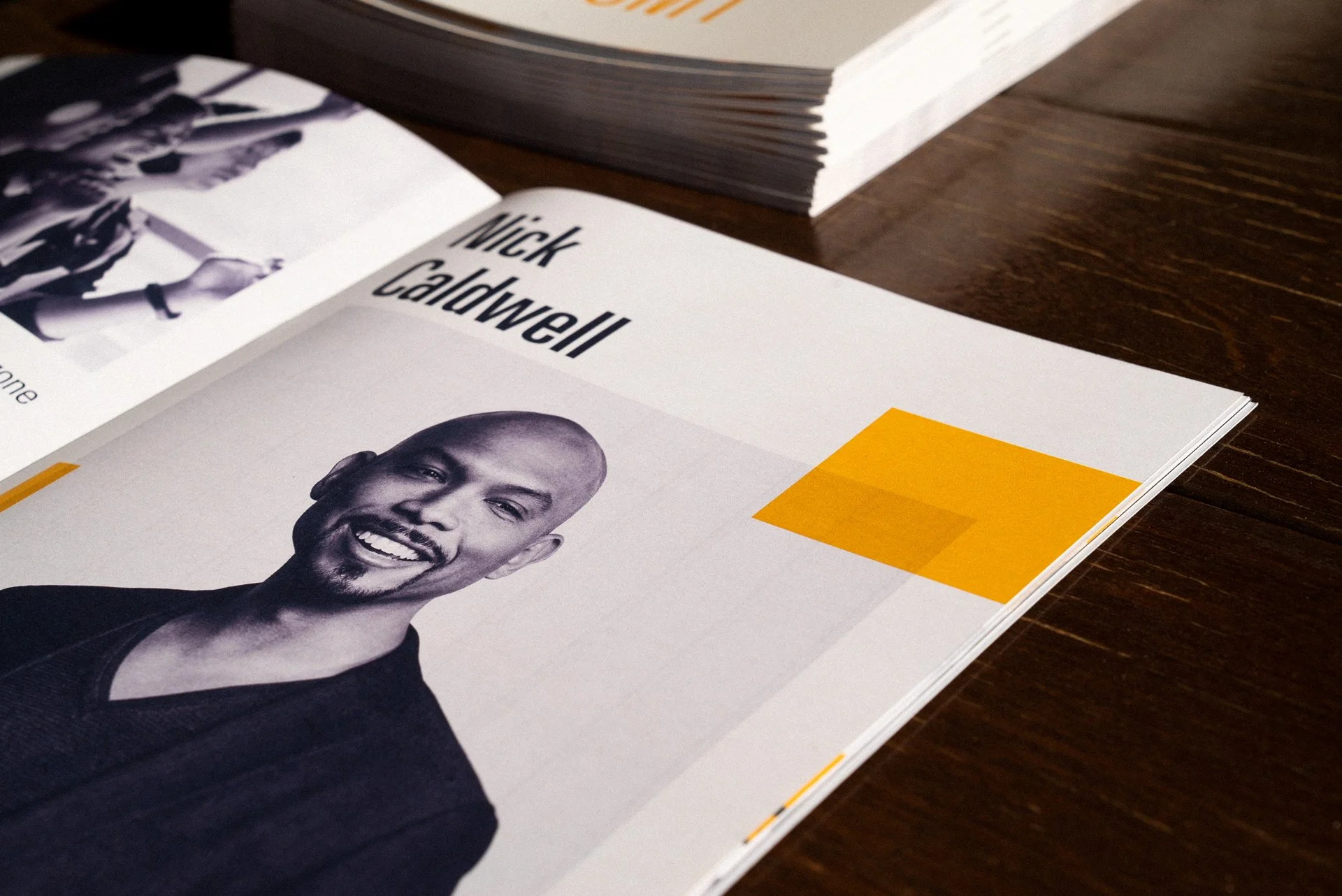 While staying true to UC Berkeley's recognizable color palette of solid navy and brilliant gold, designer Cas Fornalski broadened the typographic spectrum beyond conventional styles. Departing from the BerkeleyHaas brand's usual reliance on two weights of the Univers font (55 Regular and 65 Bold), we ventured into the extremes of Adrian Frutiger's type system by incorporating the Ultra Condensed weights. These distinctive and bold vertical fonts seamlessly harmonized with the program's fundamental themes of strength, empowerment, and leadership.
